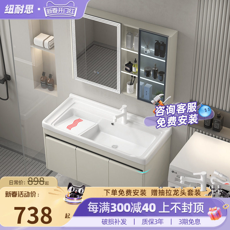 纽耐思阳台洗衣柜小户型陶瓷一体盆带搓板浴室柜洗衣池台盆柜组合
