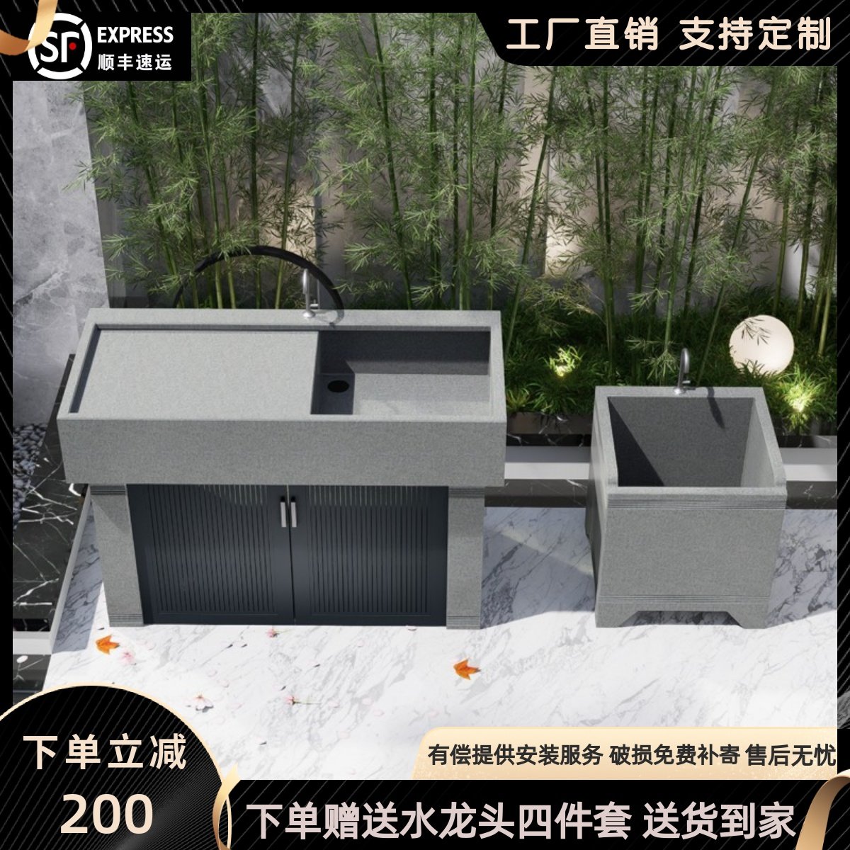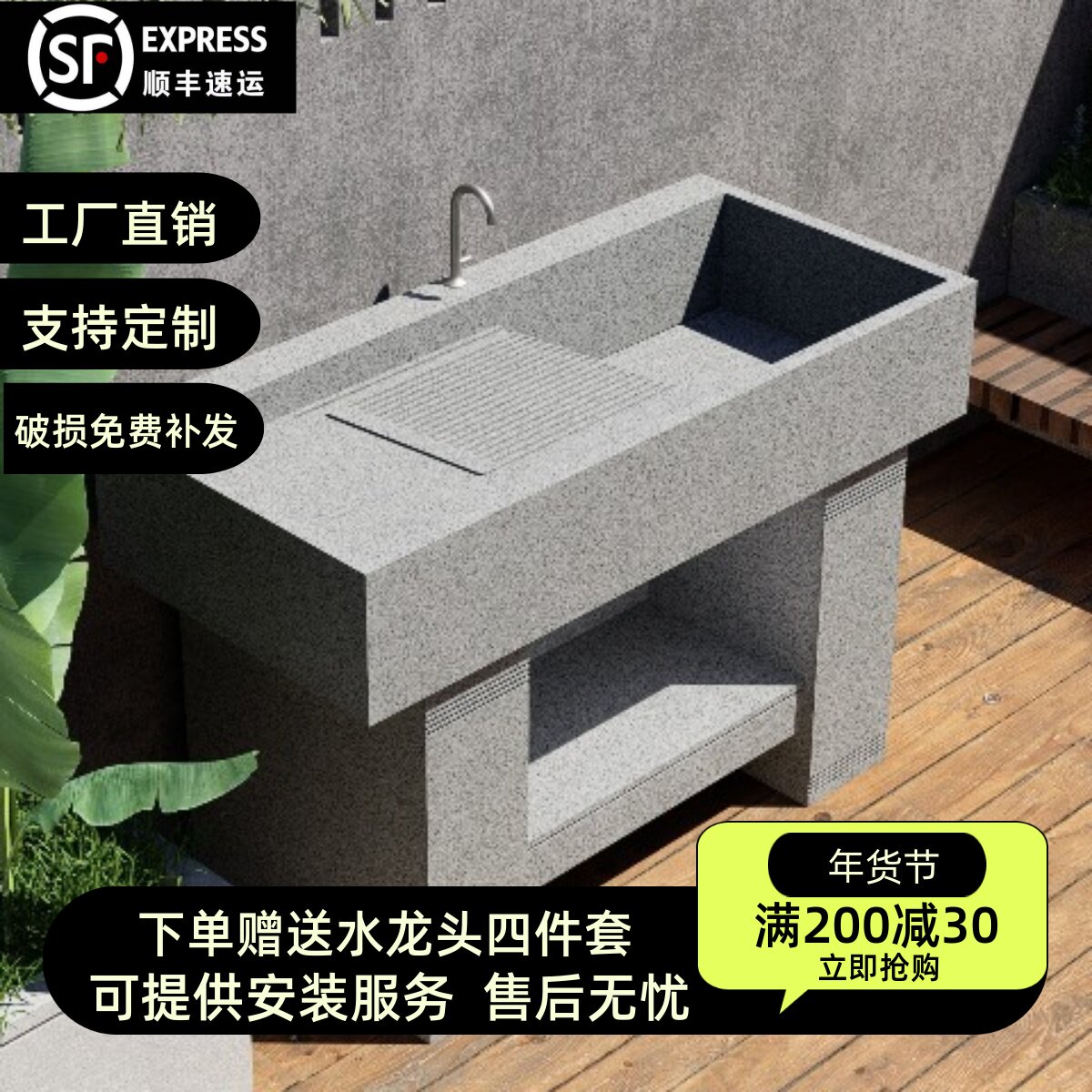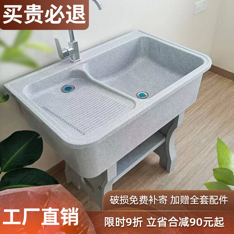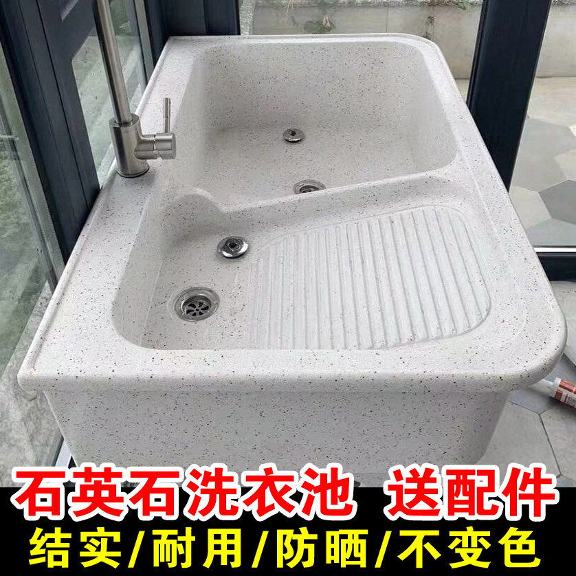 石英石洗衣池阳台家用带搓板洗衣台庭院室外大理石一体式落地水槽