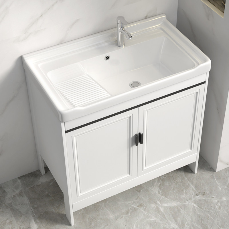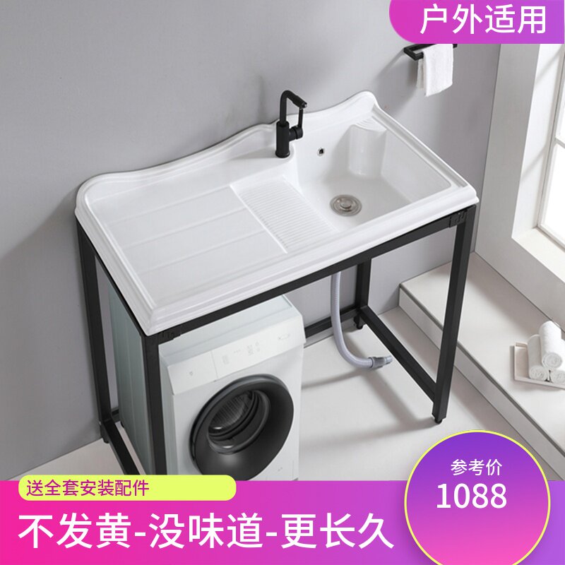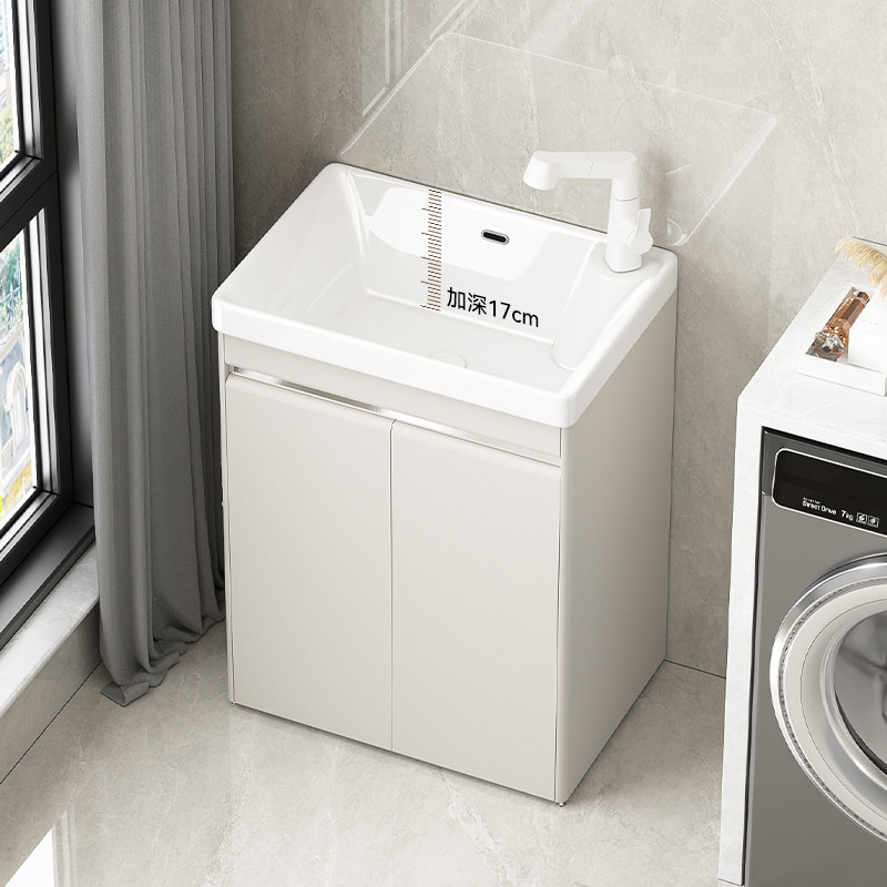 洗衣池带搓板单台阳台洗衣槽家用定制太空铝洗衣柜组合陶瓷洗衣盆