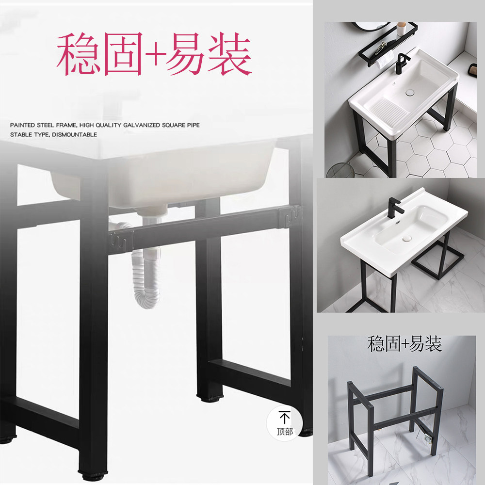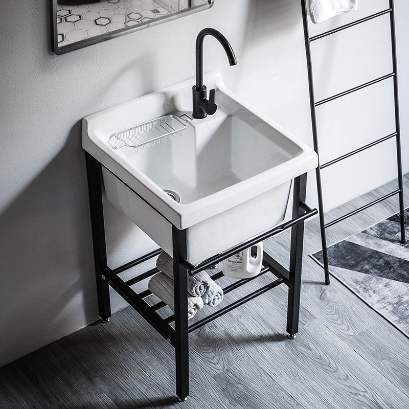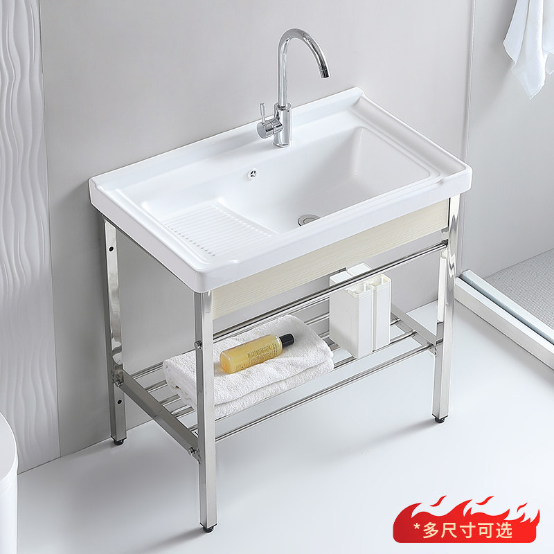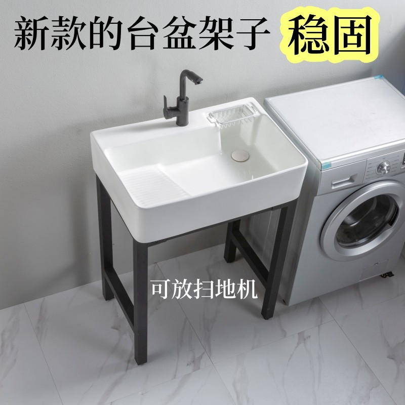 陶瓷洗衣盆带搓板水池不锈钢支架阳台洗衣槽超深洗衣池水池洗手盆