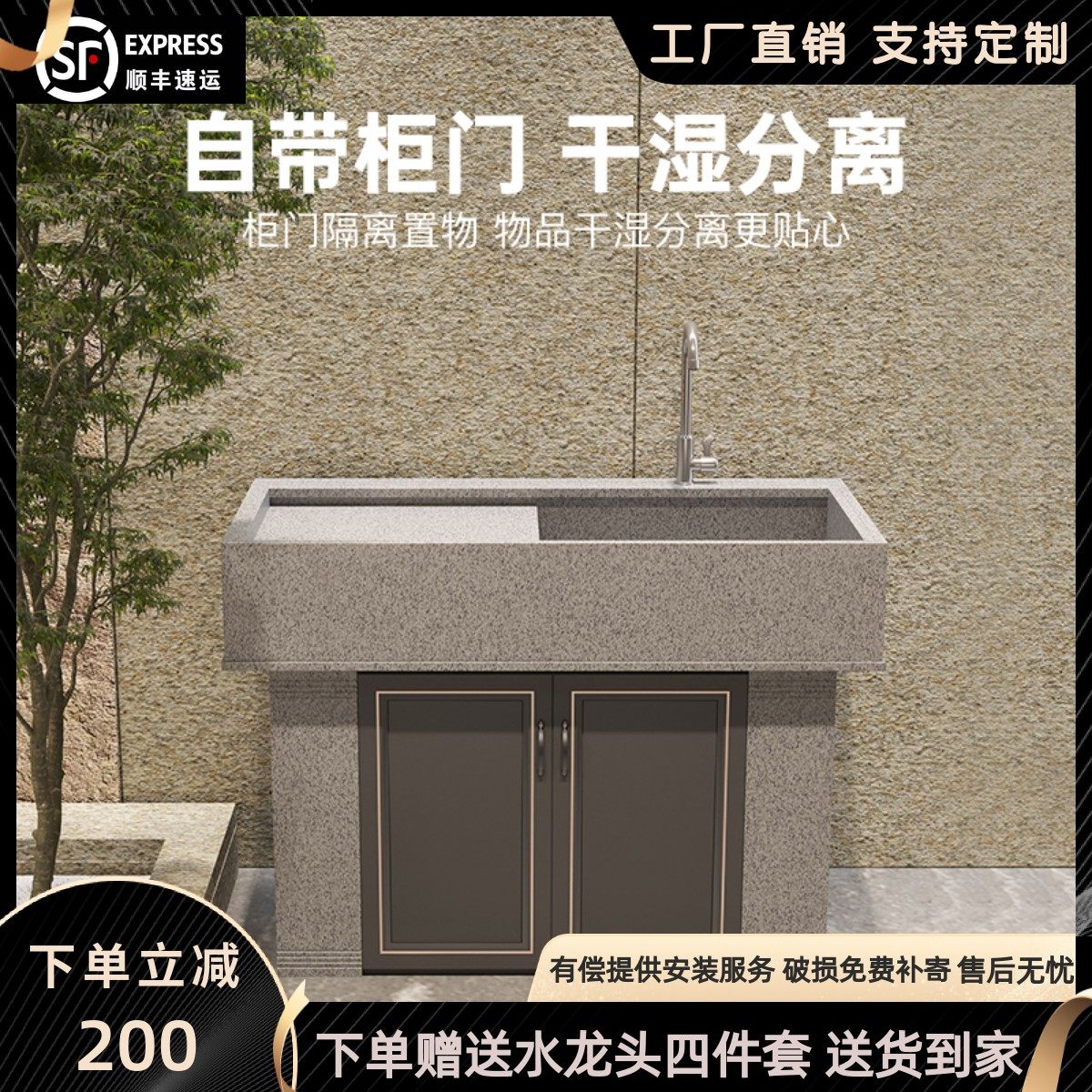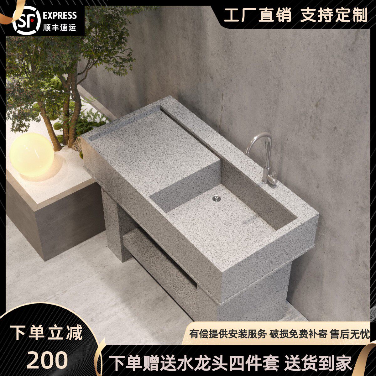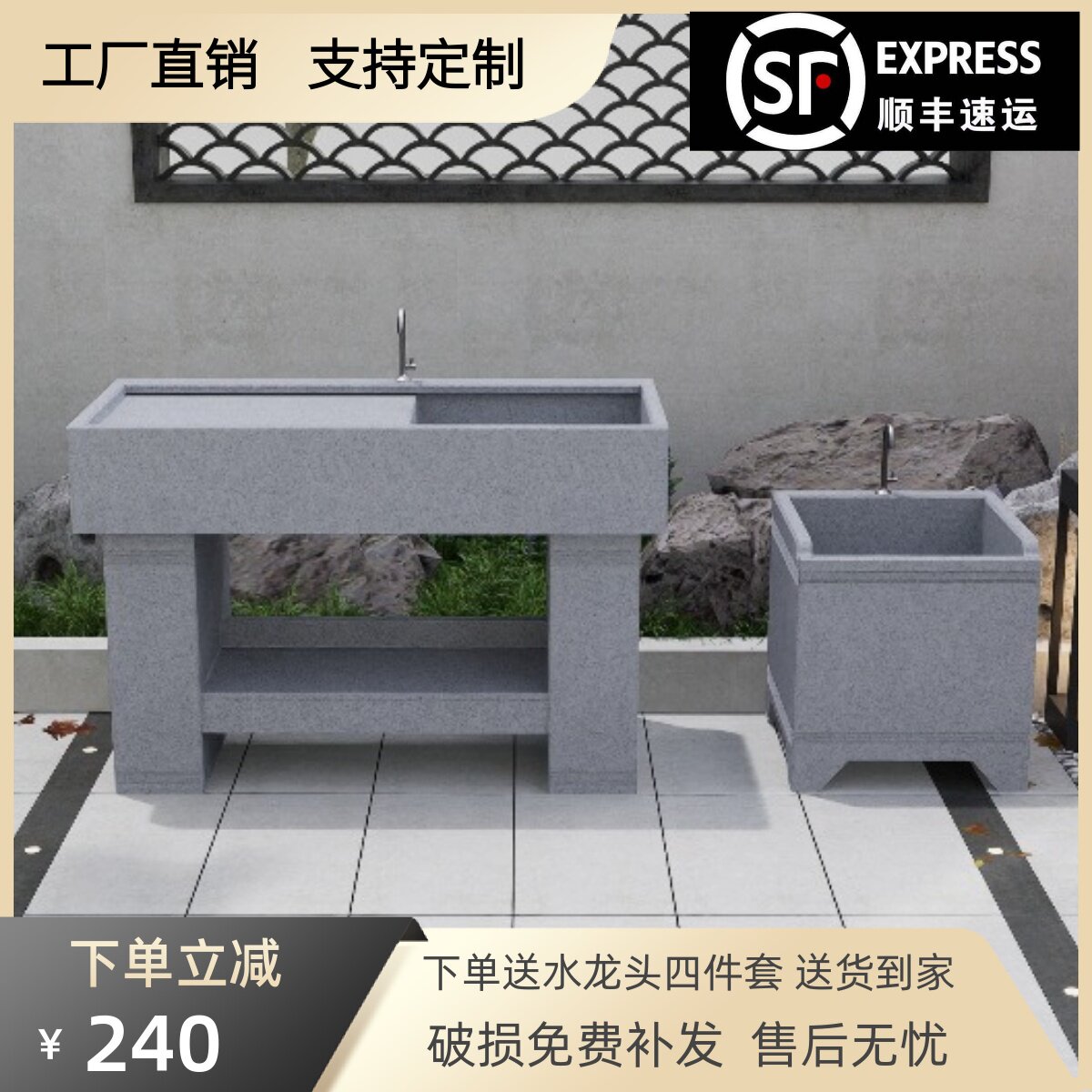 天然花岗岩洗衣池室内外洗手台定制柜门水槽户外庭院洗手池洗手盆