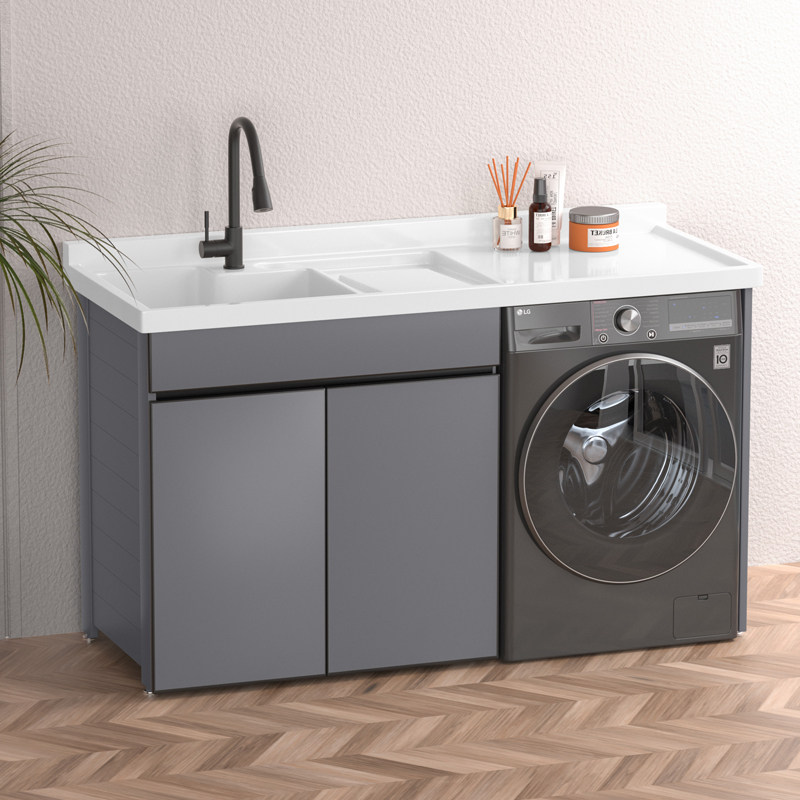 太空铝阳台洗衣机柜组合定制带搓板一体滚筒洗衣池槽台伴侣洗衣柜