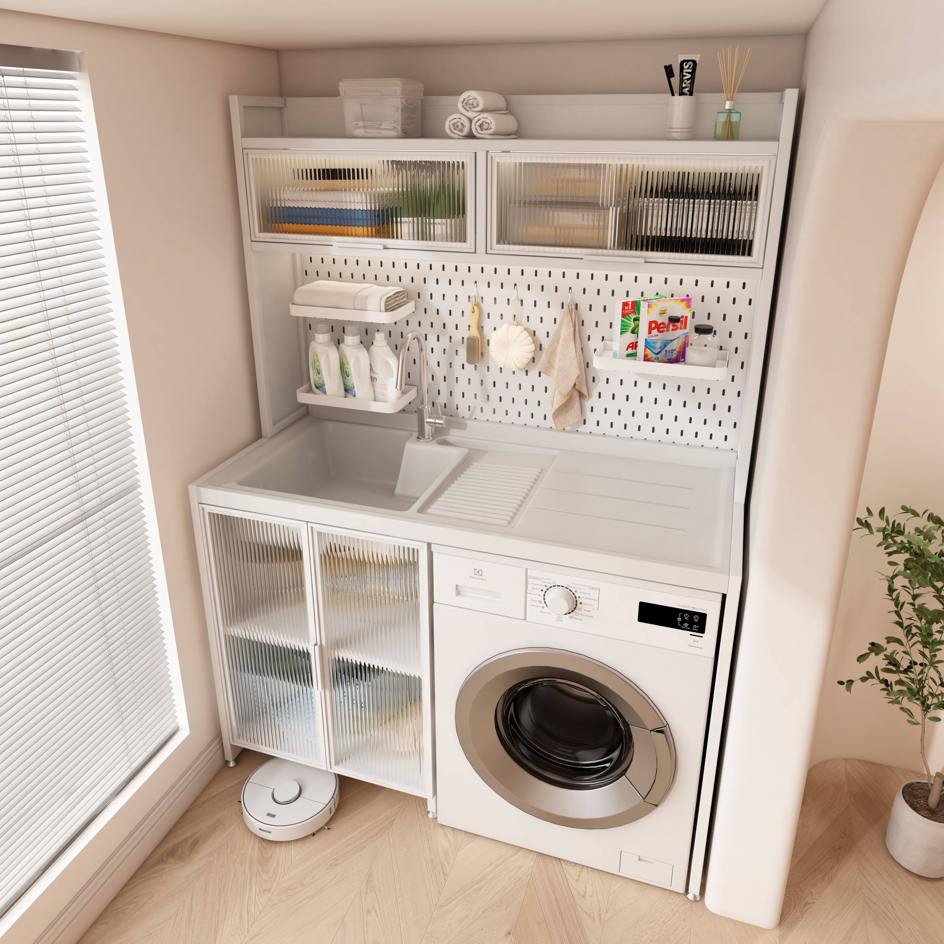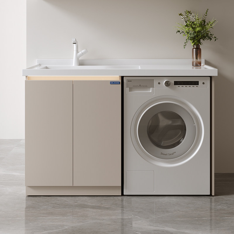 蜂窝铝阳台洗衣机柜组合定制滚筒洗衣槽池台带搓板一体洗衣柜伴侣