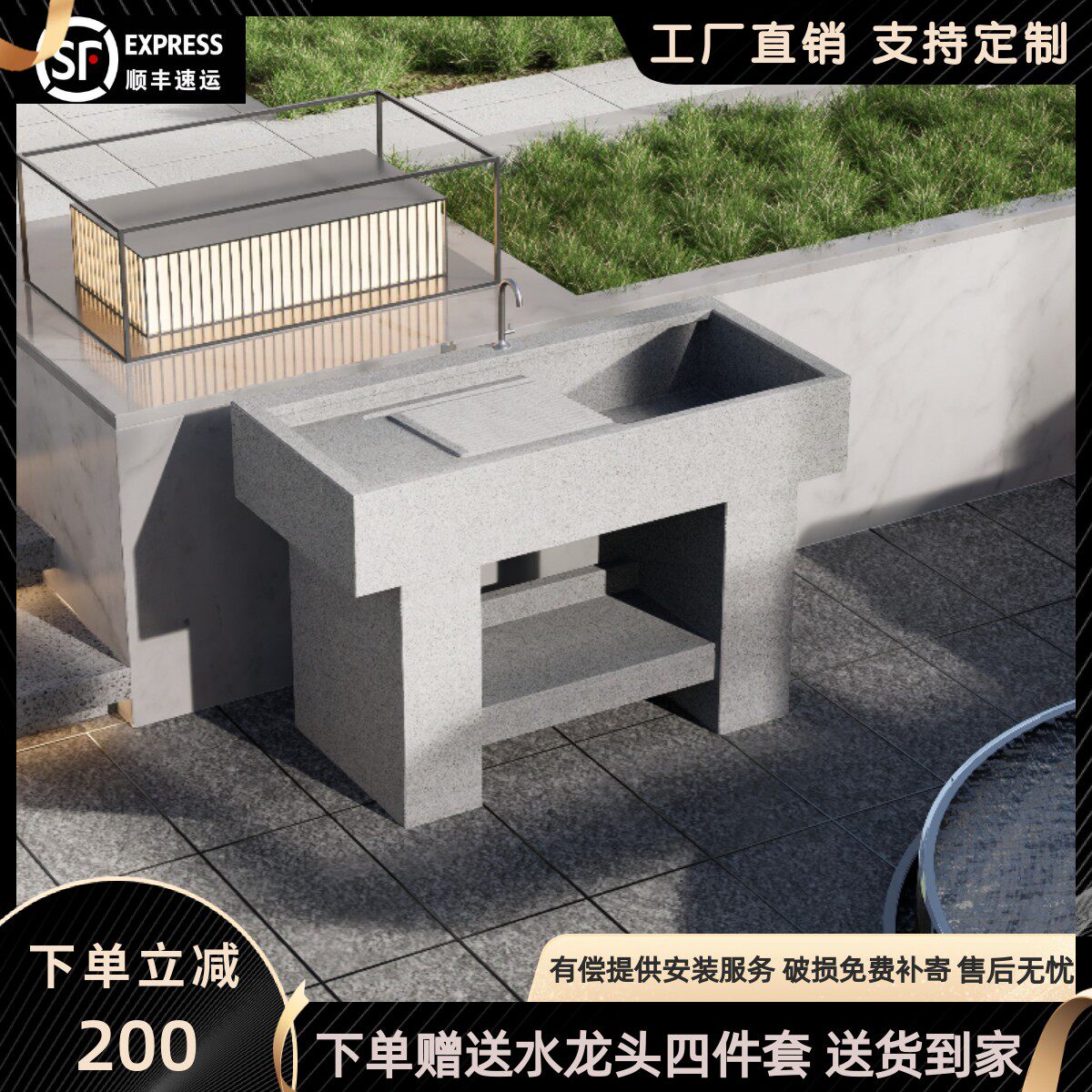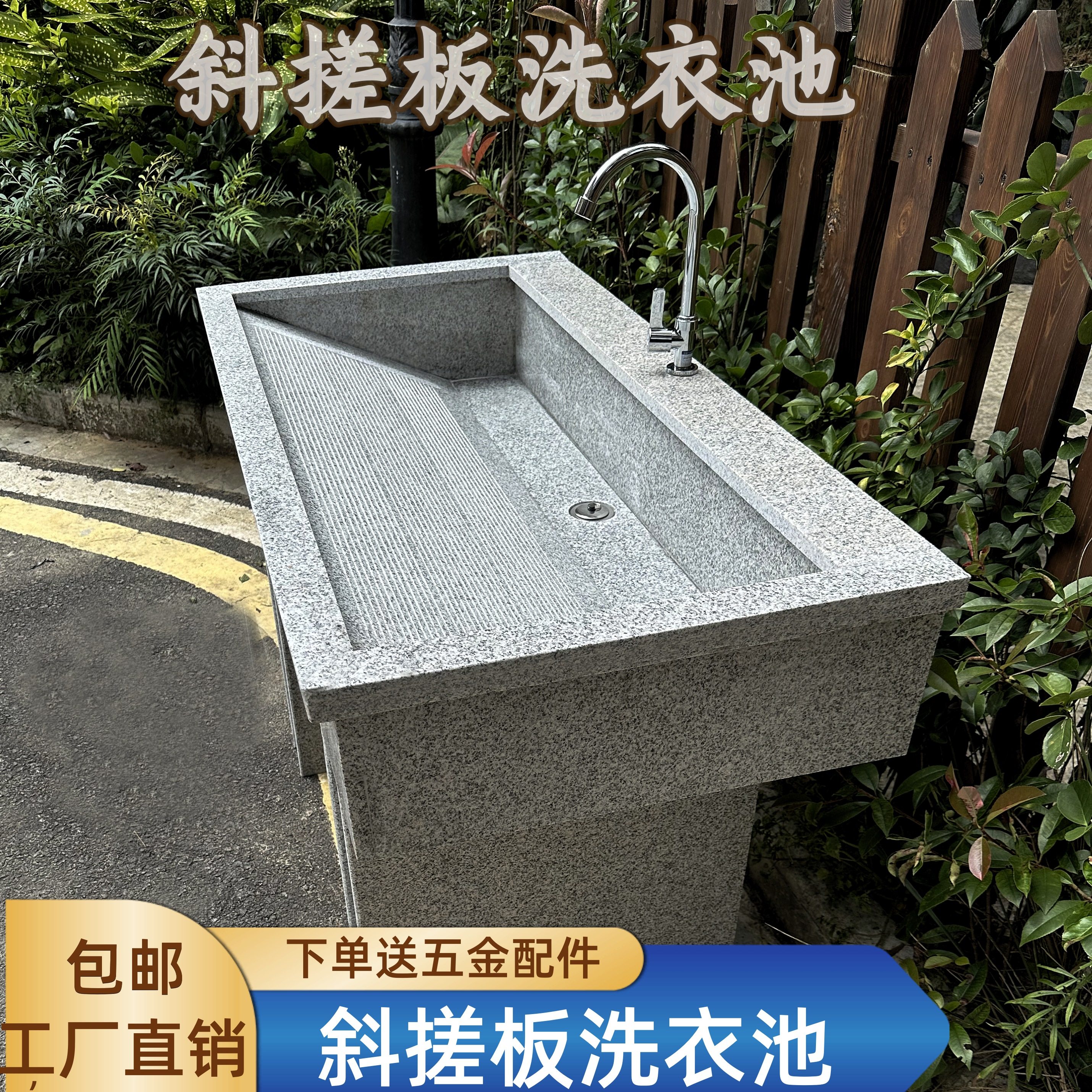 室外大理石洗衣池庭院露天花岗岩洗衣台带搓板农村院子洗衣服水槽