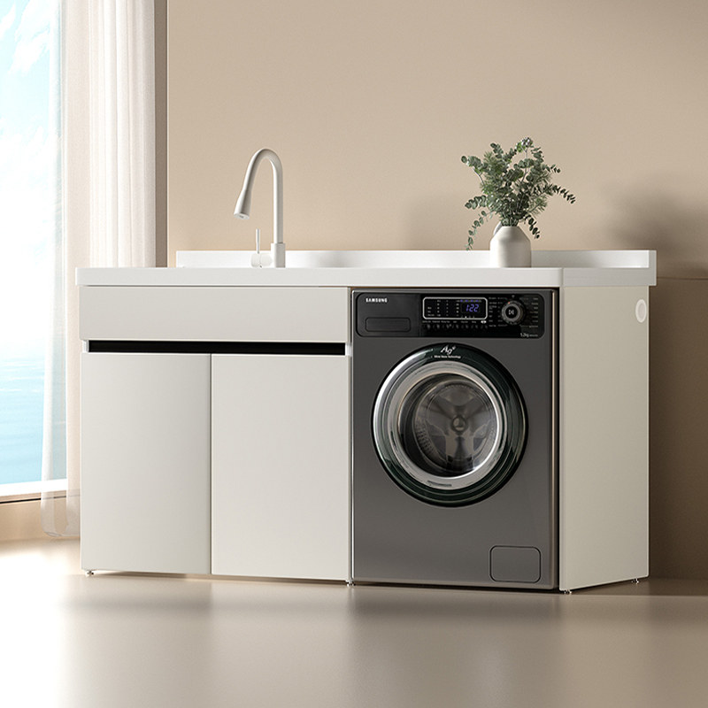 阳台太空铝洗衣柜组合石英石一体盆洗衣池带搓板滚筒洗衣机柜定制