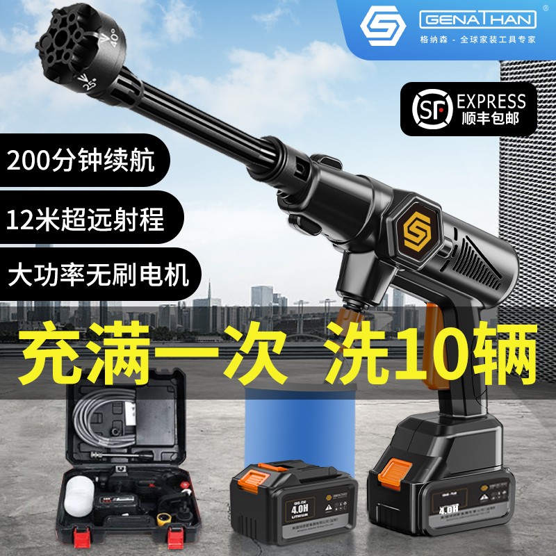 格纳森无线洗车机家用便携增高压水枪车载锂电池清洗刷车神器