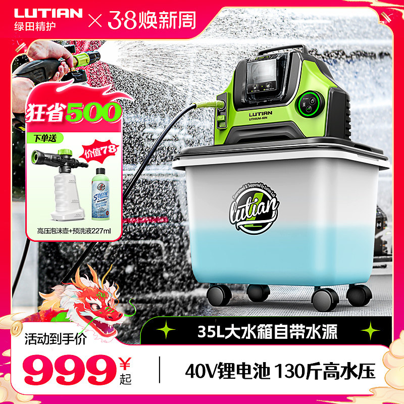 绿田无线洗车机家用锂电池高压水枪手持便捷充电刷车水泵清洗神器