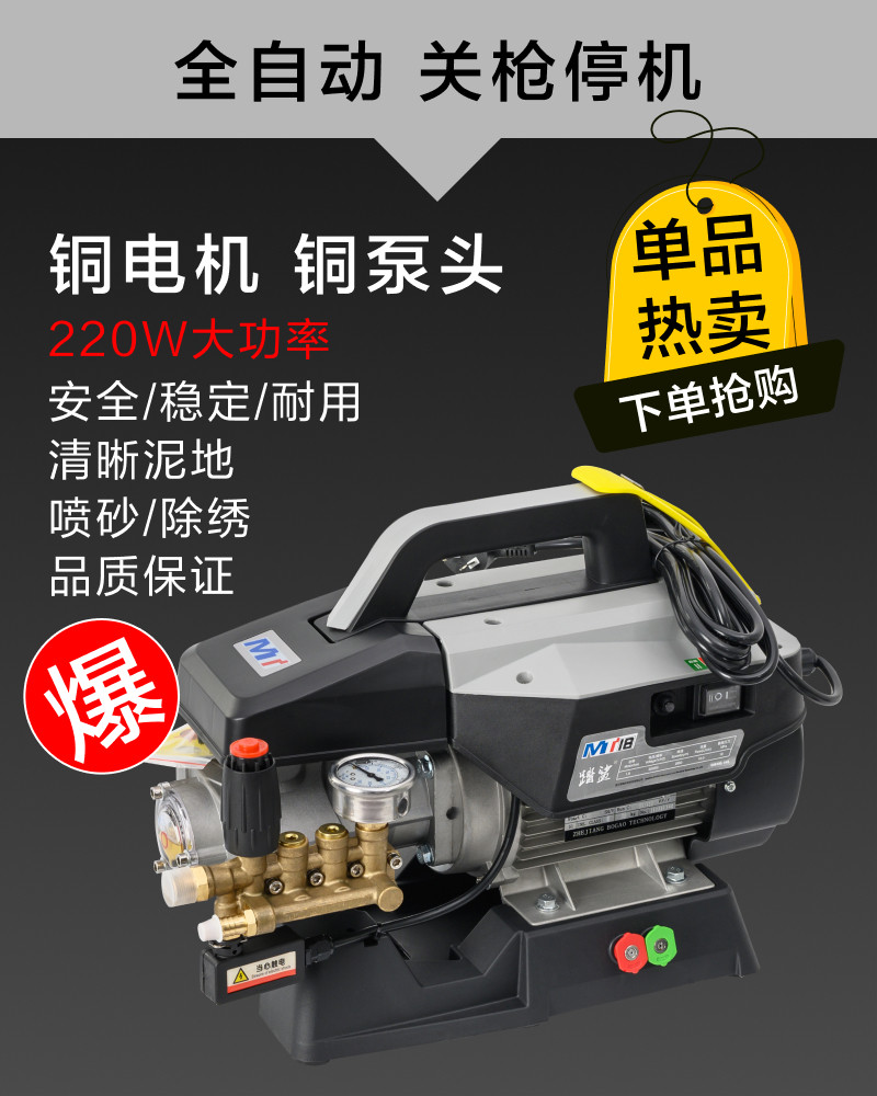 踏鲨MT18E全自动高压清洗机220V商用刷车神器全铜感应电机水枪
