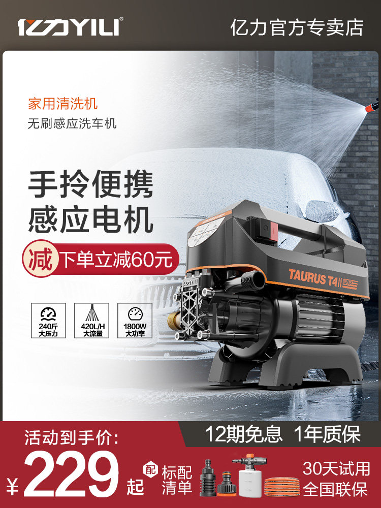 亿力4350洗车机家用220v便携洗车神器全自动洗车器大功率高压水泵