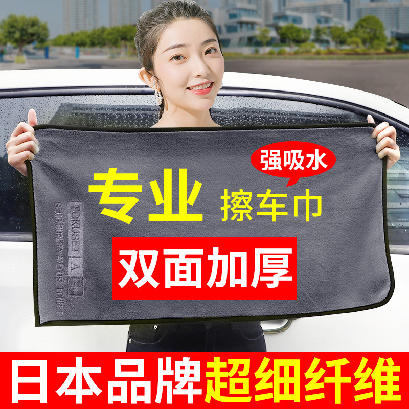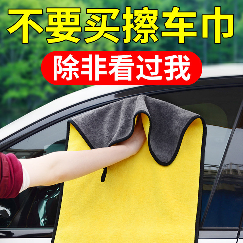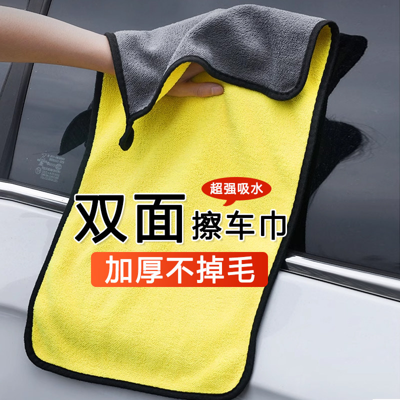 洗车毛巾擦车抹布双层吸水无痕不伤车漆不掉毛加厚汽车内饰清洁布