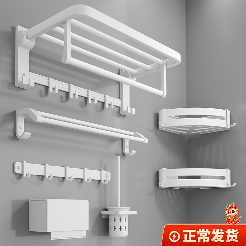 太空铝毛巾架免打孔浴巾架卫生间浴室五件套装折叠浴厕所挂件白色