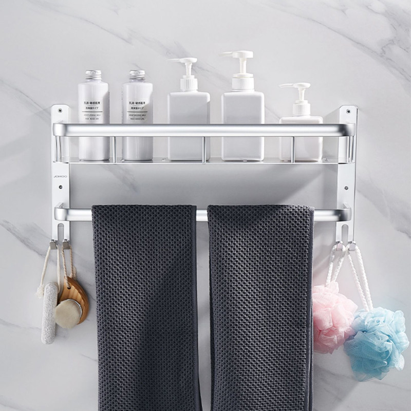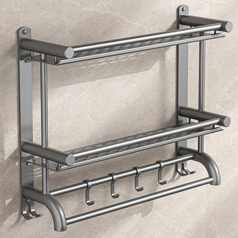 枪灰卫生间浴巾架置物架太空铝免打孔双层厕所毛巾架浴室挂件挂杆