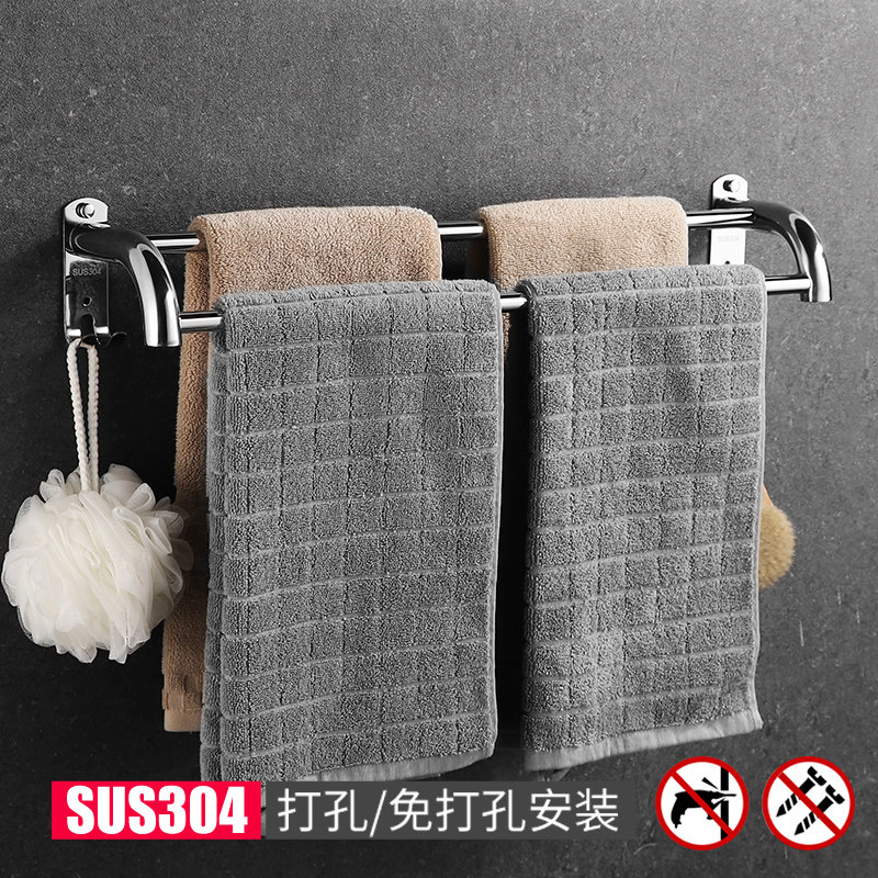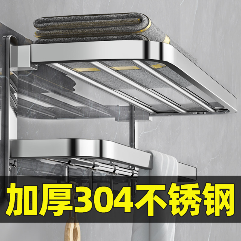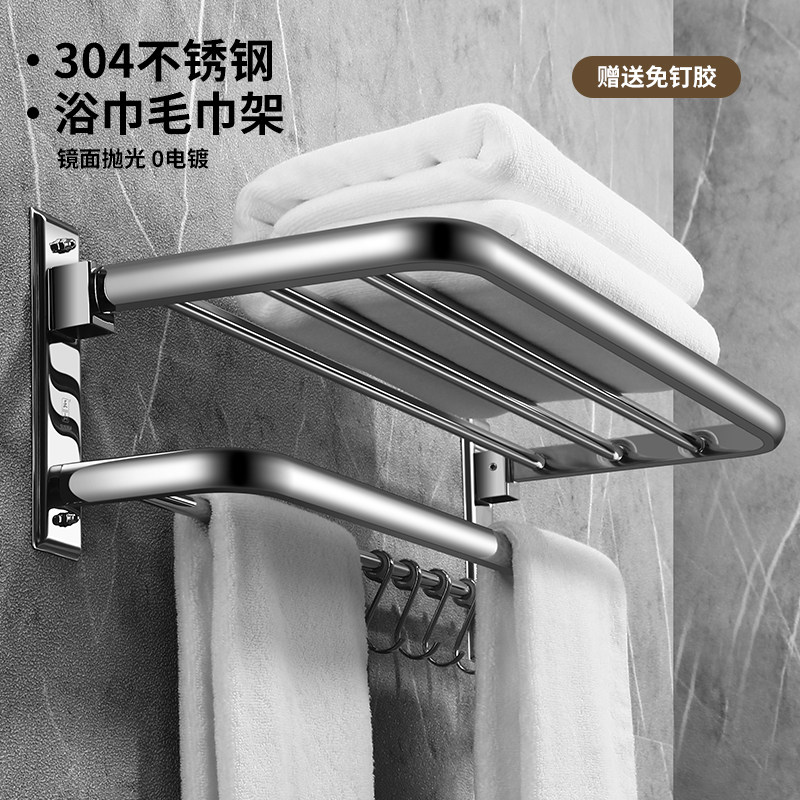304不锈钢浴巾架免打孔双层卫生间置物架浴室折叠毛巾架卫浴挂件