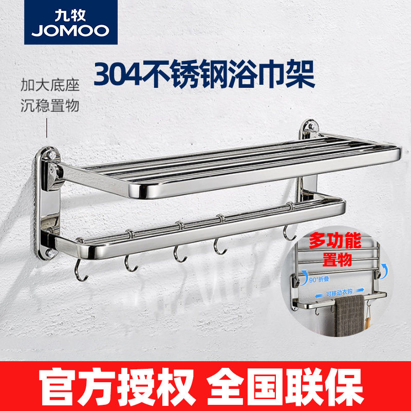 九牧卫浴官方旗舰不锈钢浴巾架毛巾架浴巾架置物架浴室挂件毛巾杆