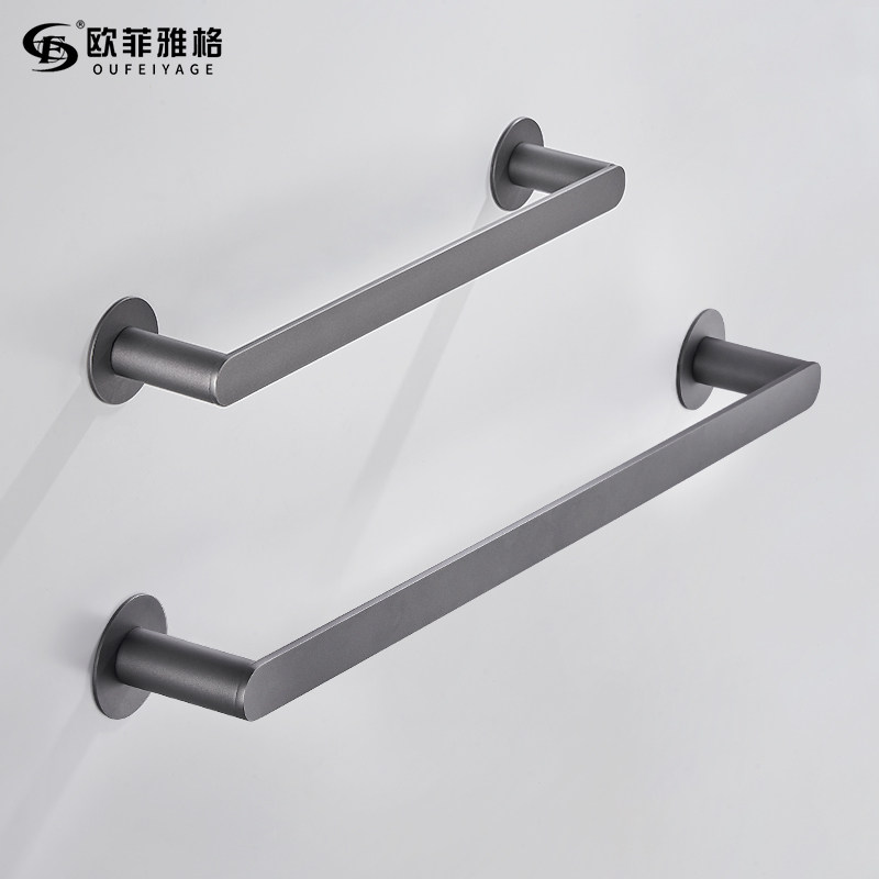 枪灰色卫生间毛巾杆单杆毛巾架304不锈钢浴室挂杆卫浴挂件免打孔