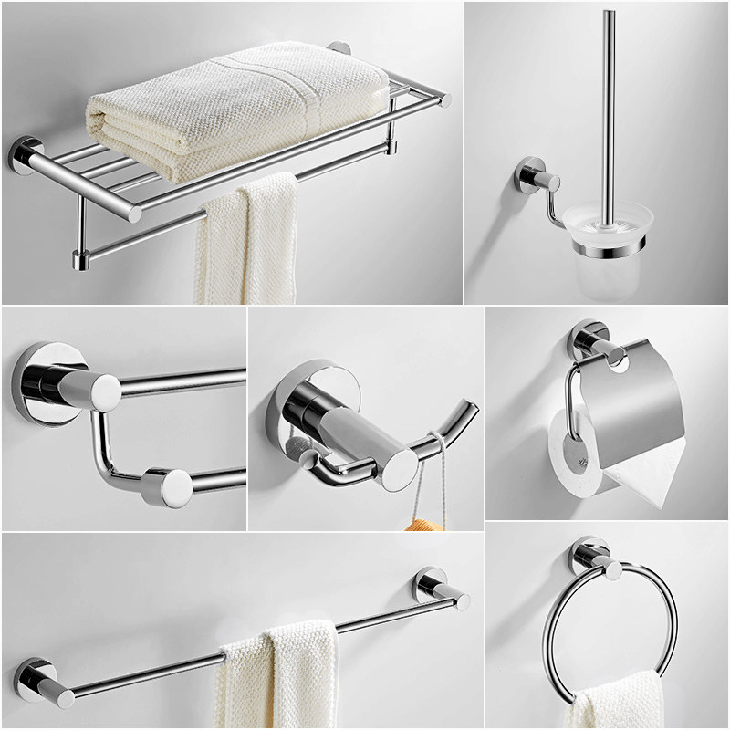 全铜毛巾架卫生间浴巾架免打孔浴室置物架厕所卫浴挂件单杆马桶刷