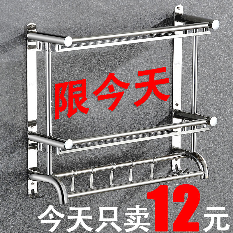 加厚304不锈钢卫生间毛巾架浴巾架浴室置物架单双三层挂件30-80cm