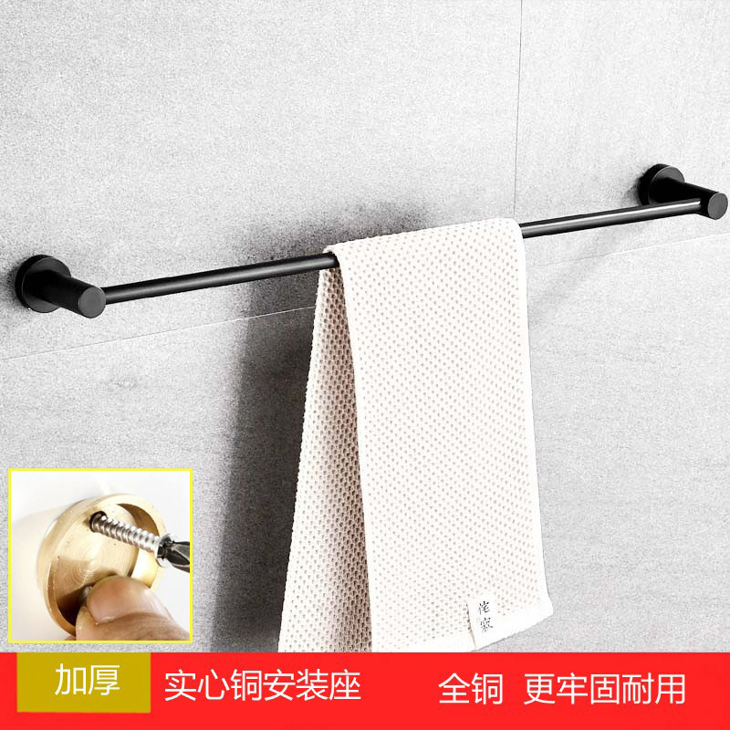 全铜毛巾架毛巾杆单杆卫生间挂杆挂毛巾挂架浴室挂件黑色打孔免钉