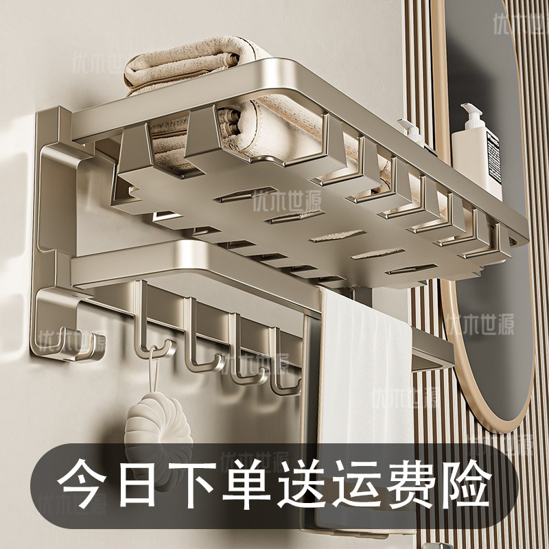 金色毛巾架卫生间置物架厕所折叠浴巾架壁挂式浴室挂件挂架免打孔