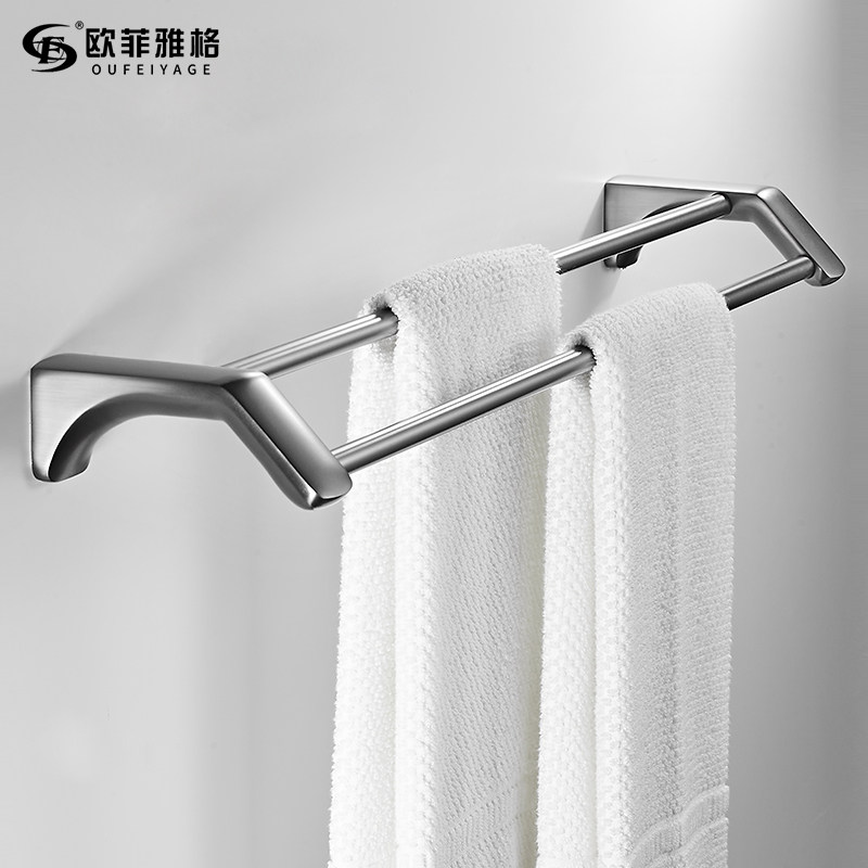 卫生间高端毛巾架免打孔加厚浴室浴巾架置物架太空铝五金挂件套装