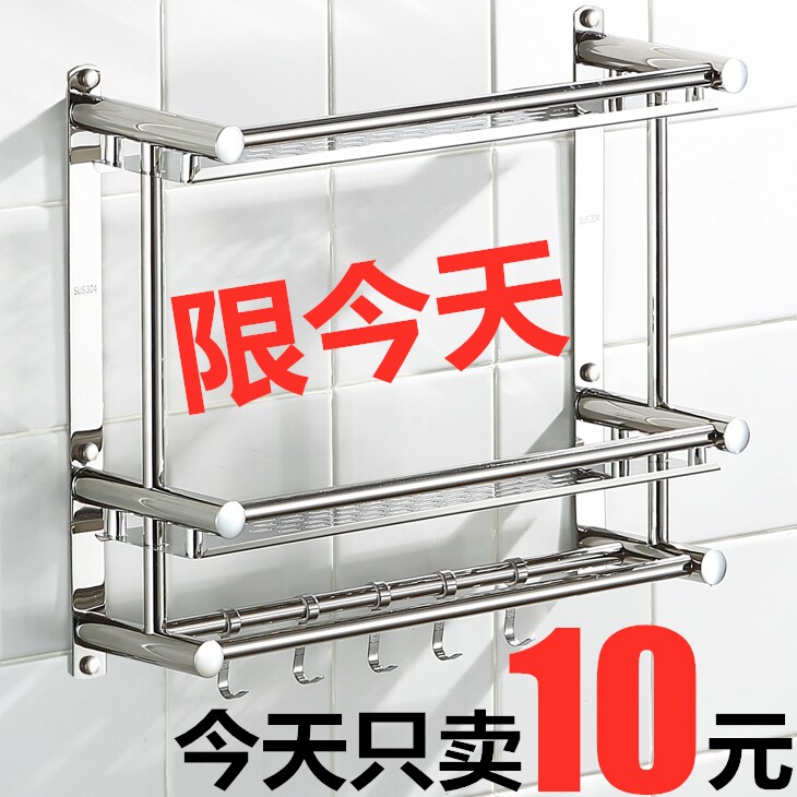 卫生间置物架壁挂免打孔浴室毛巾架不锈钢双层三层洗手间厕所挂件