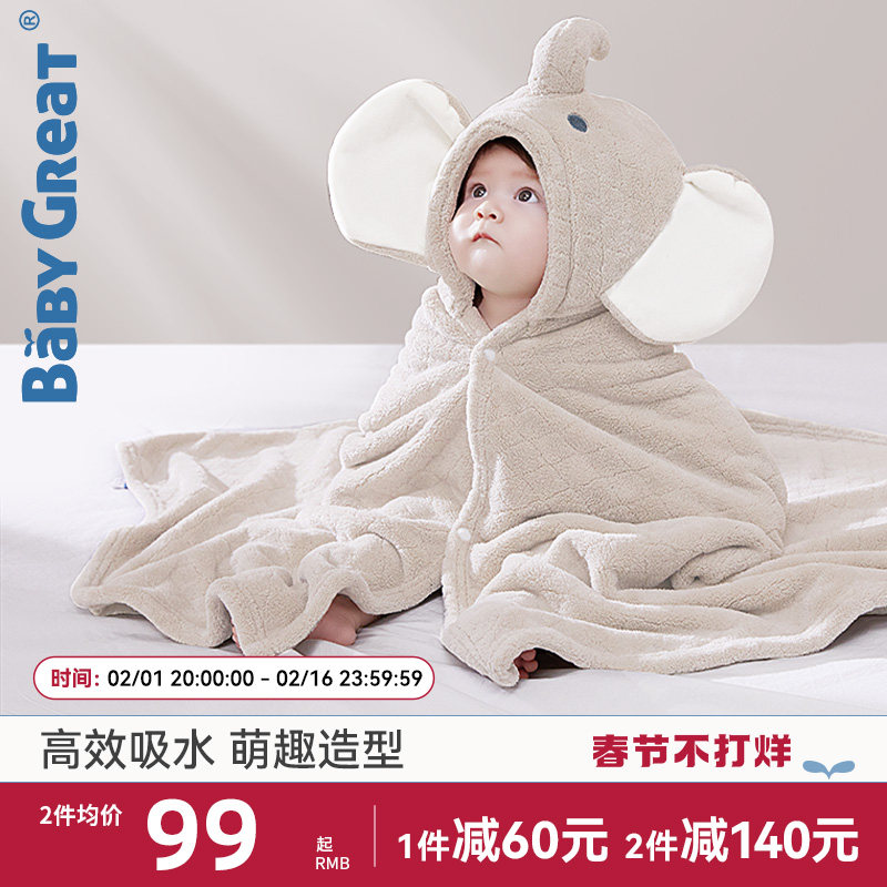 babygreat婴儿浴巾斗篷儿童浴袍带帽初生宝宝裹巾吸水速干秋冬季