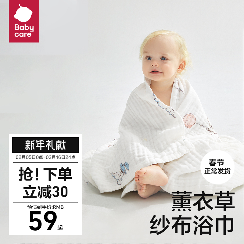 babycare婴儿泡泡纱布浴巾超柔吸水新生宝宝洗澡巾儿童盖毯大毛巾