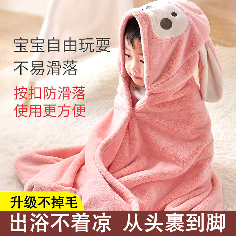 宝宝婴儿浴巾洗澡浴袍珊瑚绒儿童带帽斗篷浴袍柔软小孩婴童用品