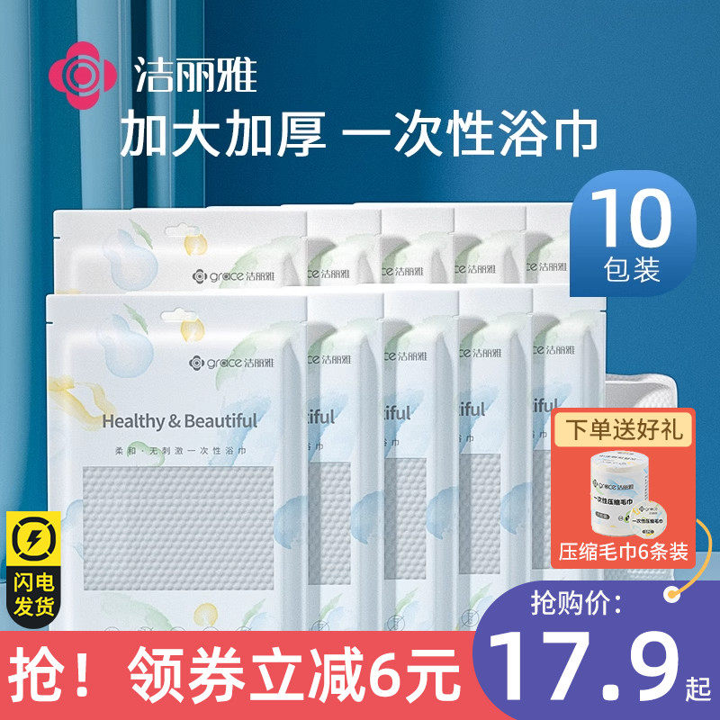 洁丽雅一次性浴巾旅行单独包装非纯棉压缩毛巾加厚加大批发10条装