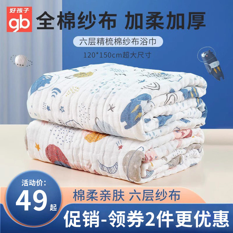好孩子婴儿六层纱布浴巾超软全棉新生洗澡巾宝宝专用儿童纯棉浴巾