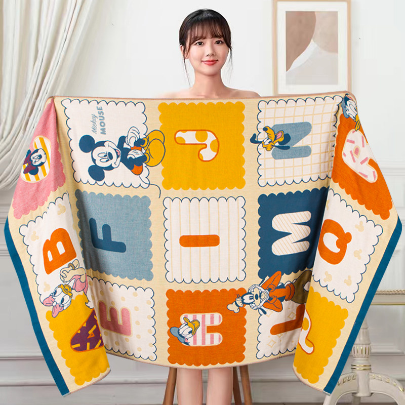 迪士尼纱布浴巾女大人男纯棉吸水速干不掉毛柔软儿童裹巾洗澡专用