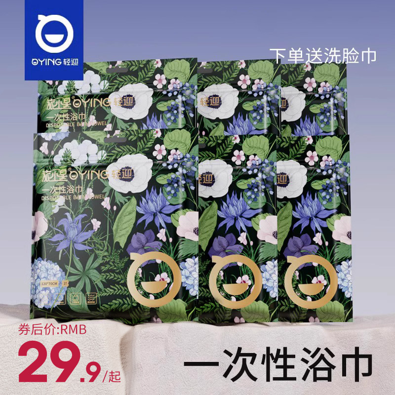 轻迎一次性浴巾压缩干加厚加大毛巾旅行出差酒店独立包装7包套装