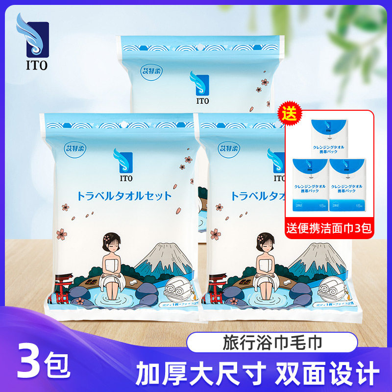 日本ito浴巾毛巾套装便携旅行装棉一次性加厚全棉纯棉出差旅游3包