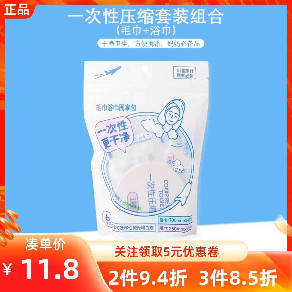 【春节发货】悦适一次性浴巾毛巾旅行压缩加大加厚单独包装