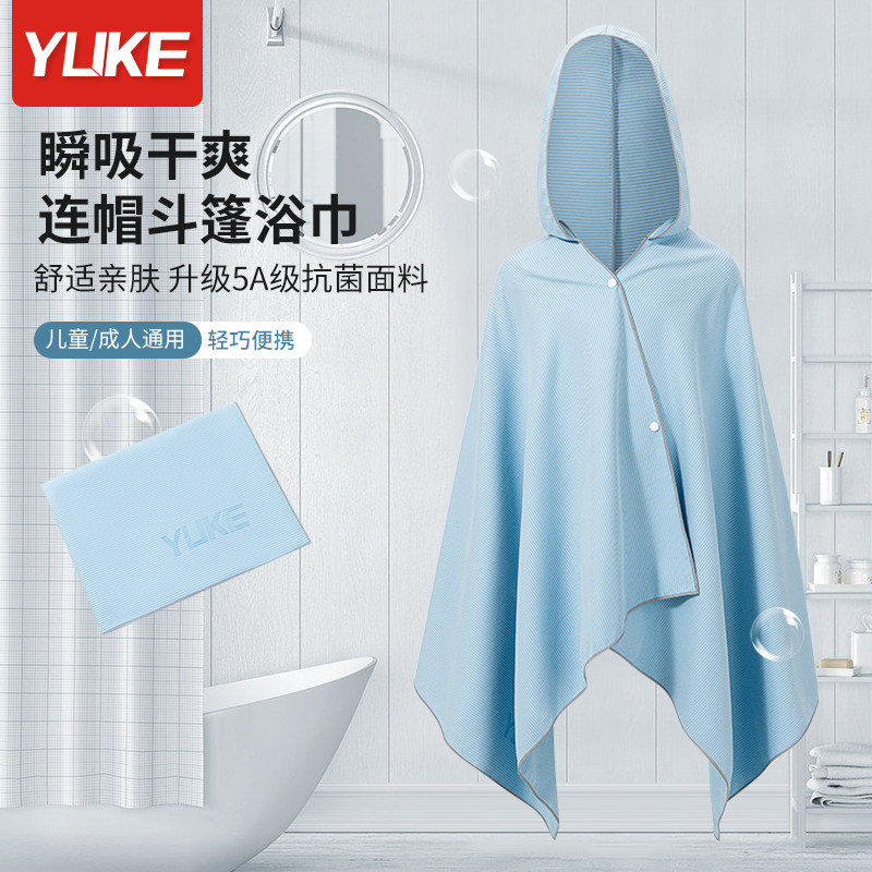 亲子款沙滩速干浴袍游泳斗篷带帽可穿式浴巾健身运动洗澡吸水快干