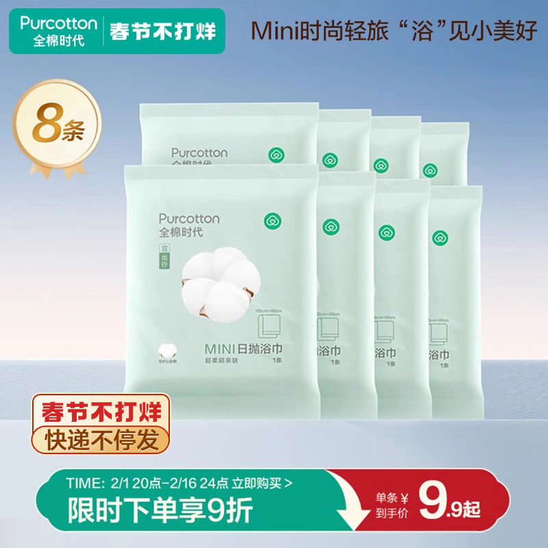 全棉时代一次性浴巾旅游便携纯棉压缩毛巾厚实吸水旅行用品8条装