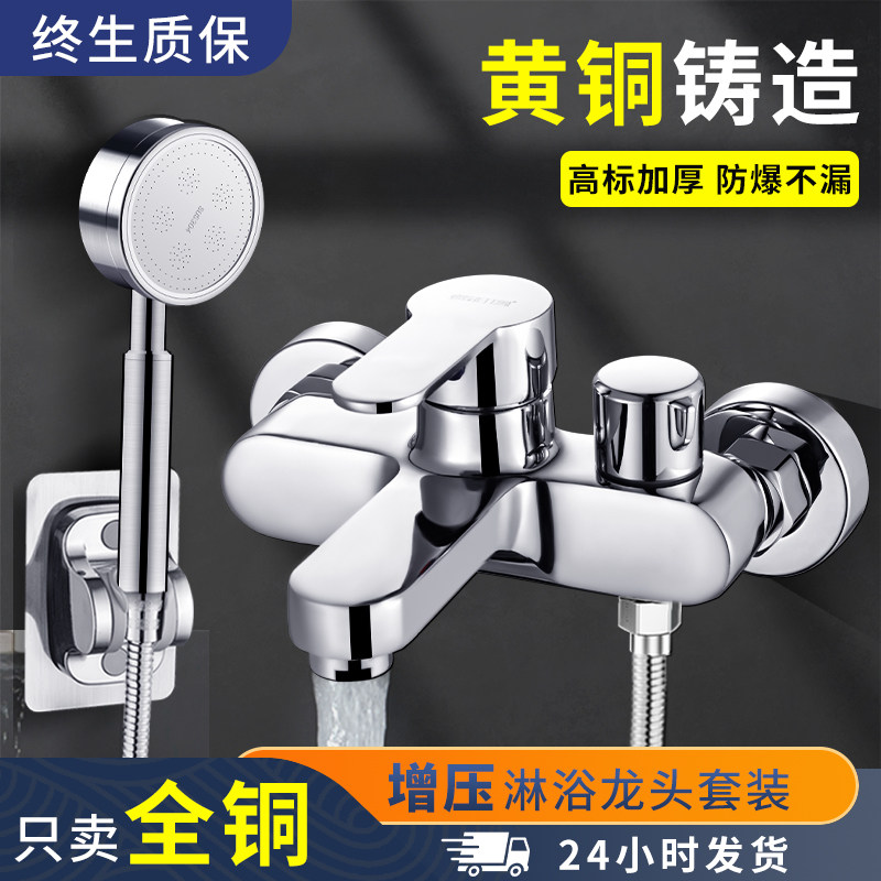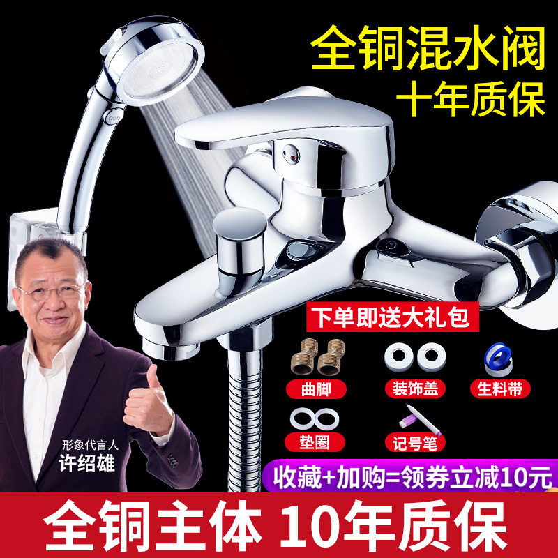 全铜混水阀冷热水龙头淋浴洗澡沐浴浴室浴缸龙头开关简易花洒套装