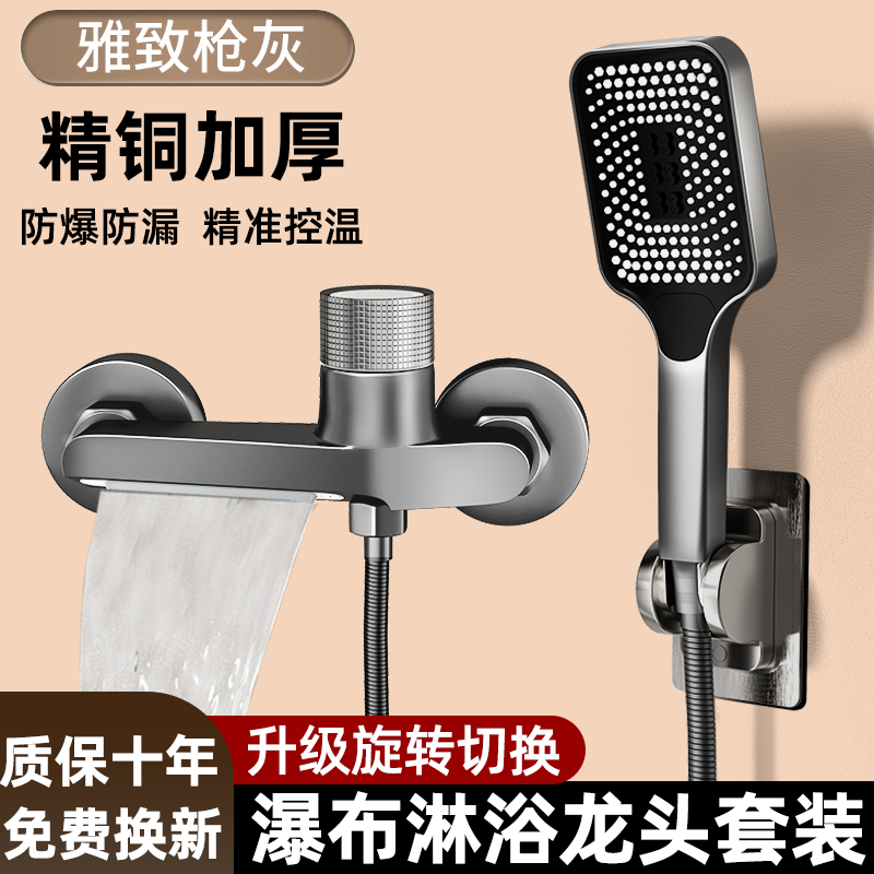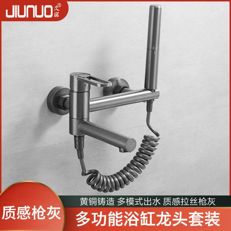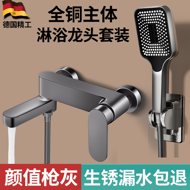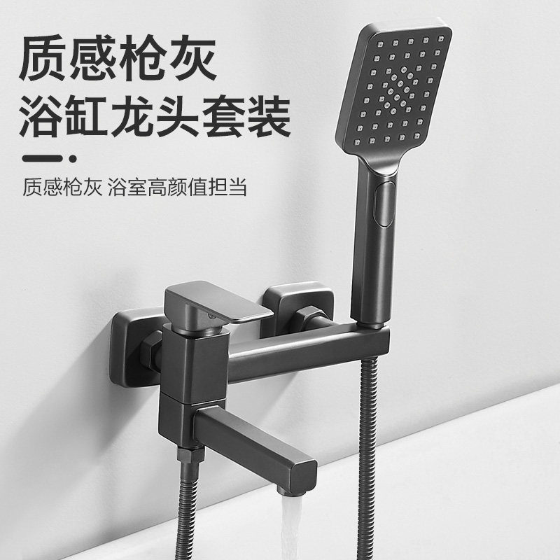 枪灰色全铜浴缸淋浴冷热水龙头浴室混水阀简易花洒套装开关淋浴器