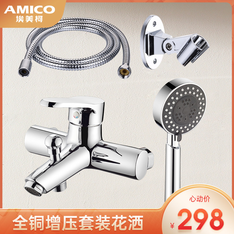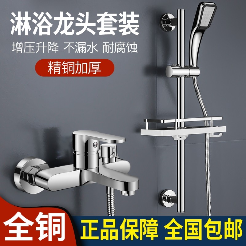 精铜混水阀淋浴冷热水龙头浴室浴缸简易三联洗澡花洒喷头沐浴套装