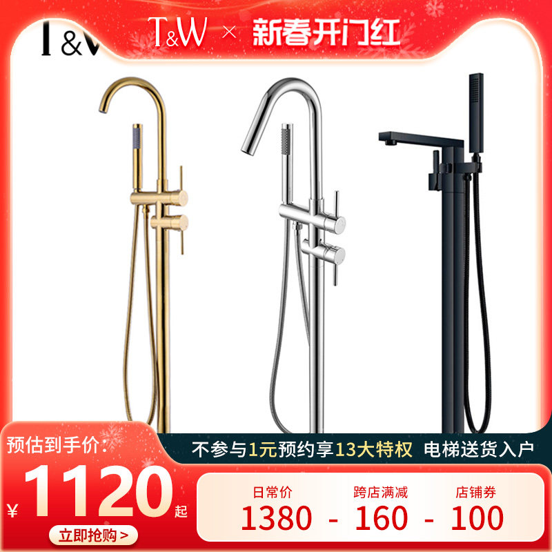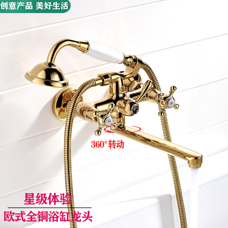 仿古淋浴花洒水龙头金色欧式复古浴缸龙头全铜冷热浴盆混水阀加长