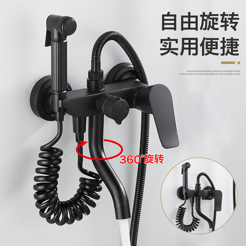 黑色浴缸多功能全铜水龙头 浴室入墙式浴缸冷热龙头 淋雨花洒喷枪