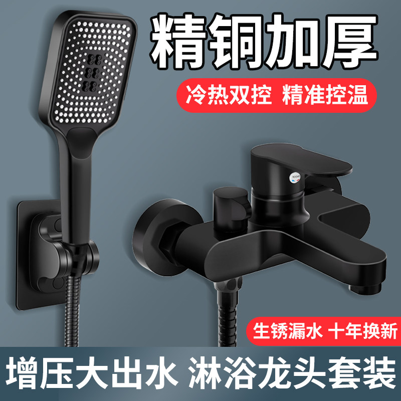黑色淋浴龙头开关冷热混水阀卫浴室沐浴器淋雨花洒洗澡浴缸水龙头