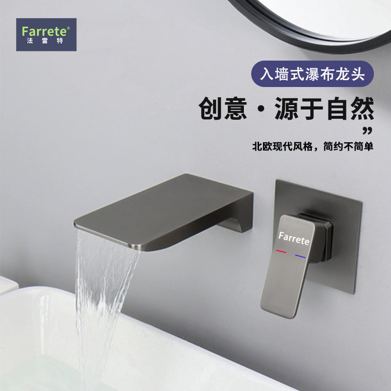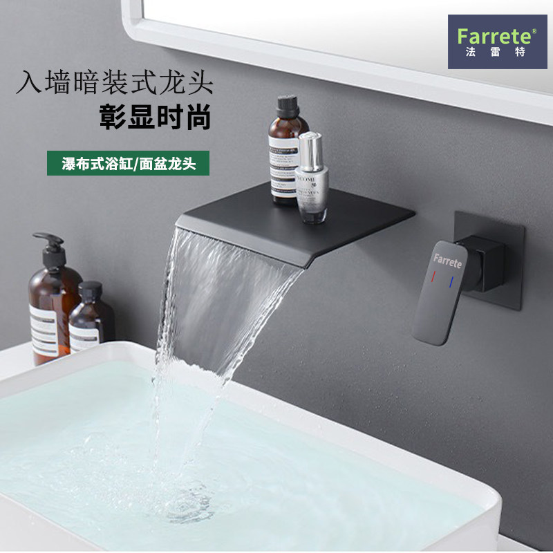 法雷特全铜入墙式黑色暗装面盆水龙头浴室浴缸瀑布台盆冷热水龙头