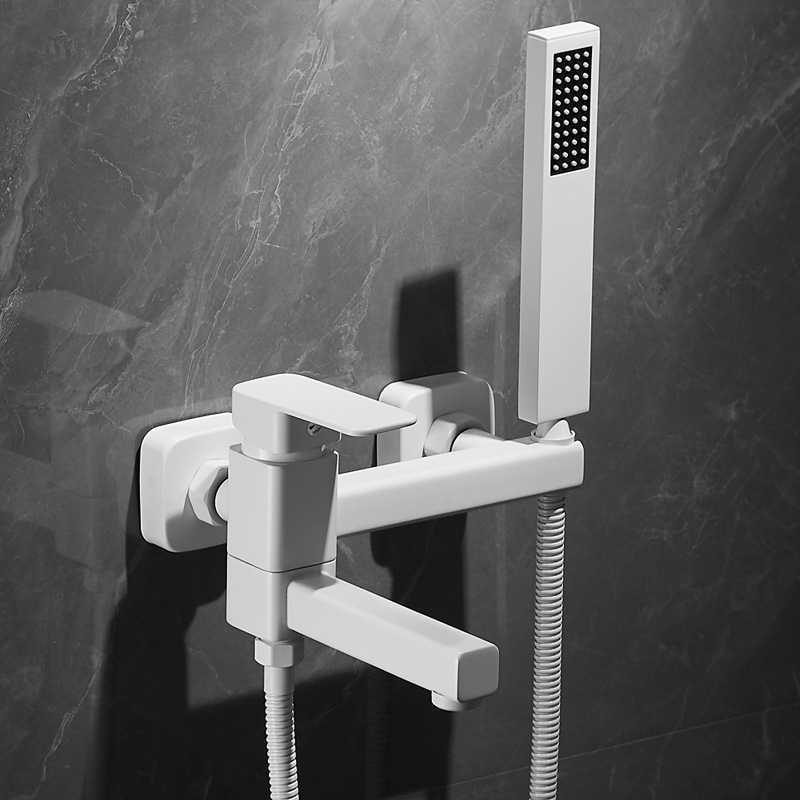 白色浴缸水龙头简易淋浴花洒全铜混水阀套装浴室洗澡沐浴增压喷头