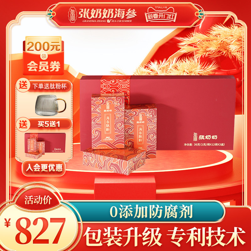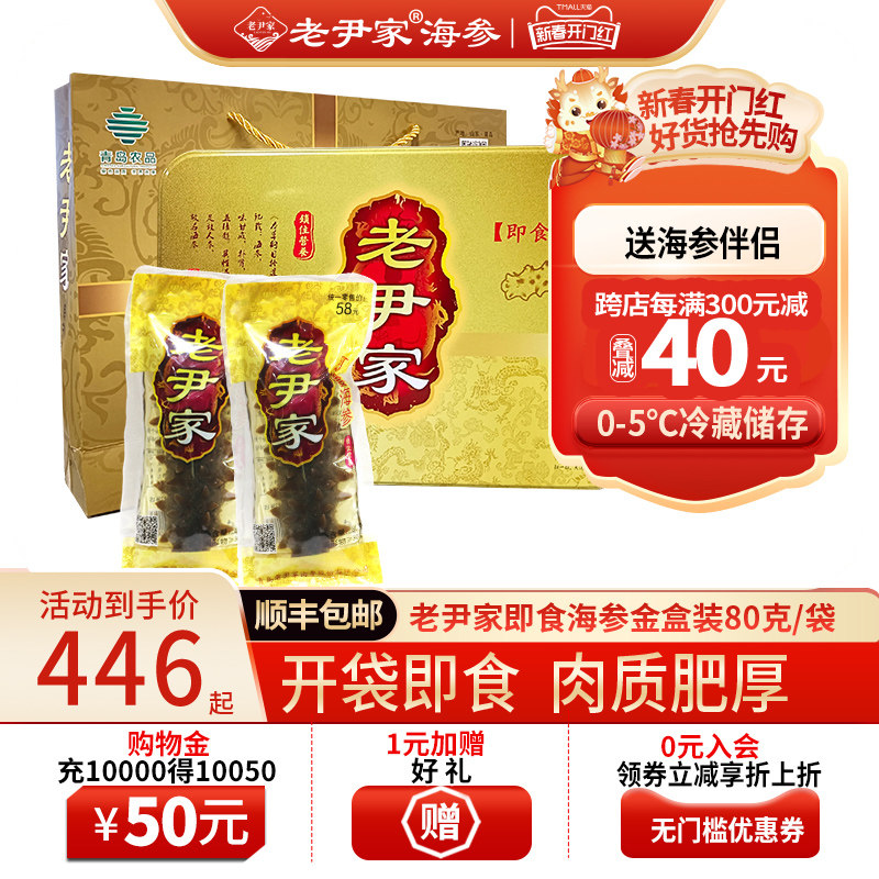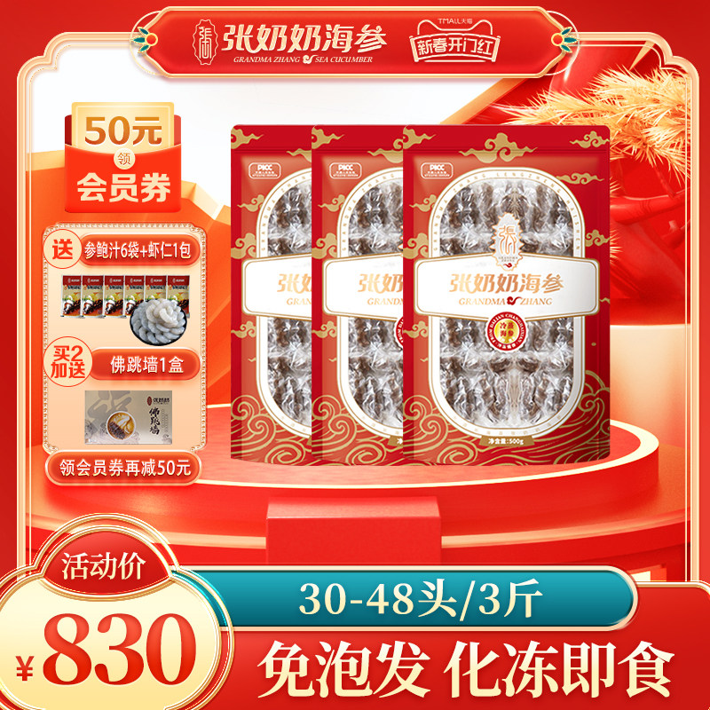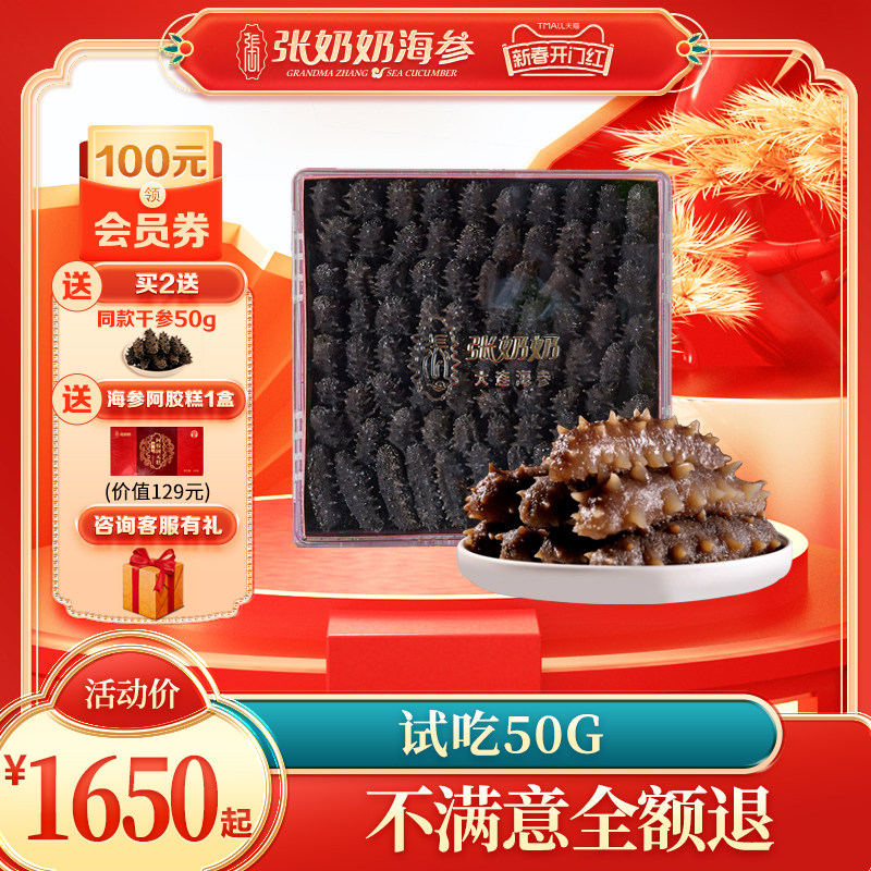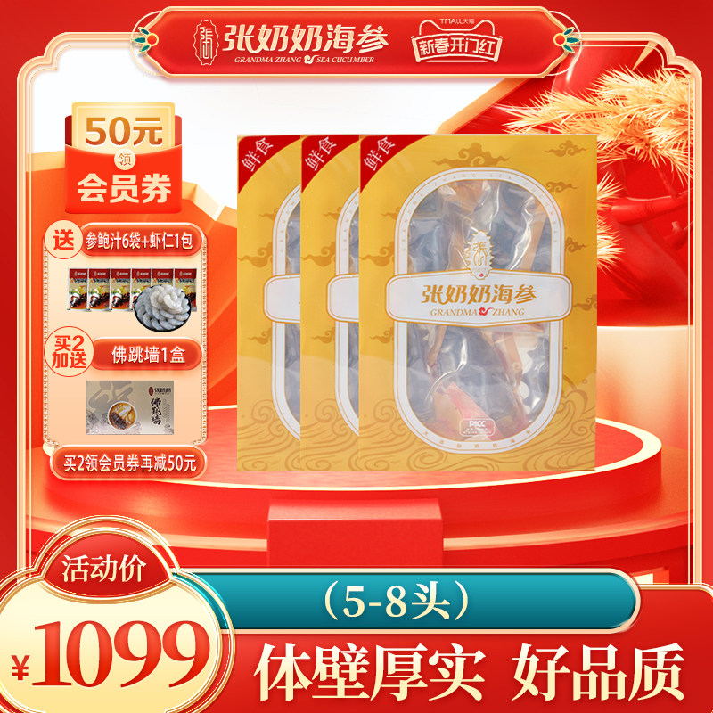 张奶奶大连即食海参500g礼盒非干鲜活辽刺参速食冷冻佳品特价年货