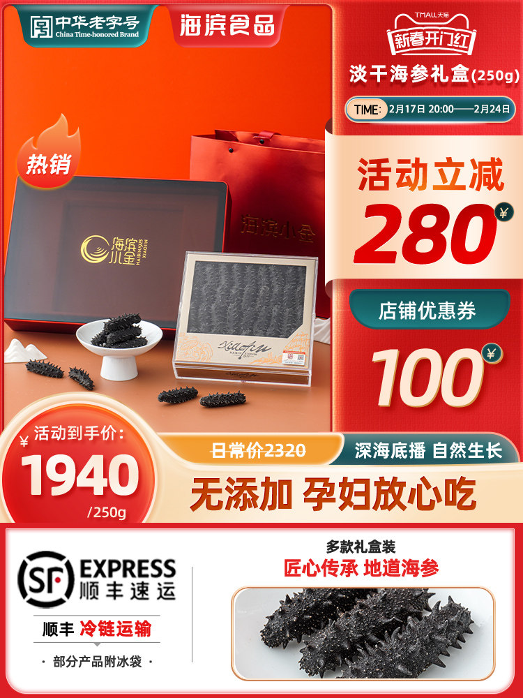 海滨小金北方深海底播刺参淡干海参干货礼盒级250g克半斤促销优惠