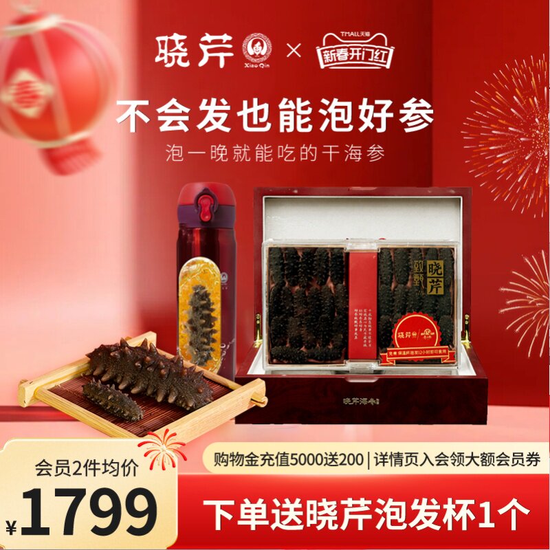 【年货礼盒】晓芹干海参礼盒大连海参500g40-60头辽刺参干货正品