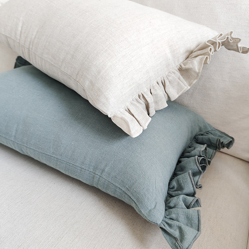 定制麻布肌理 100%亚麻木耳边沙发腰枕靠垫汉麻30*50长方形抱枕送