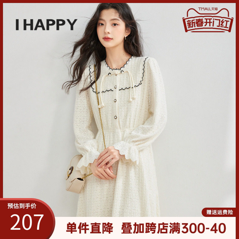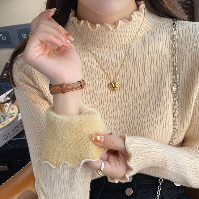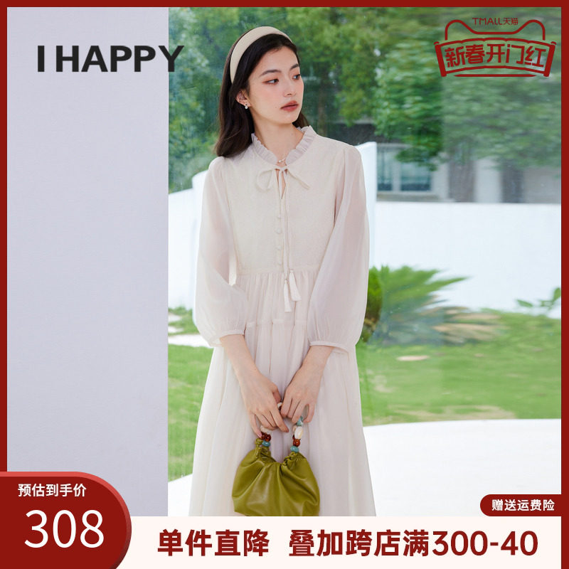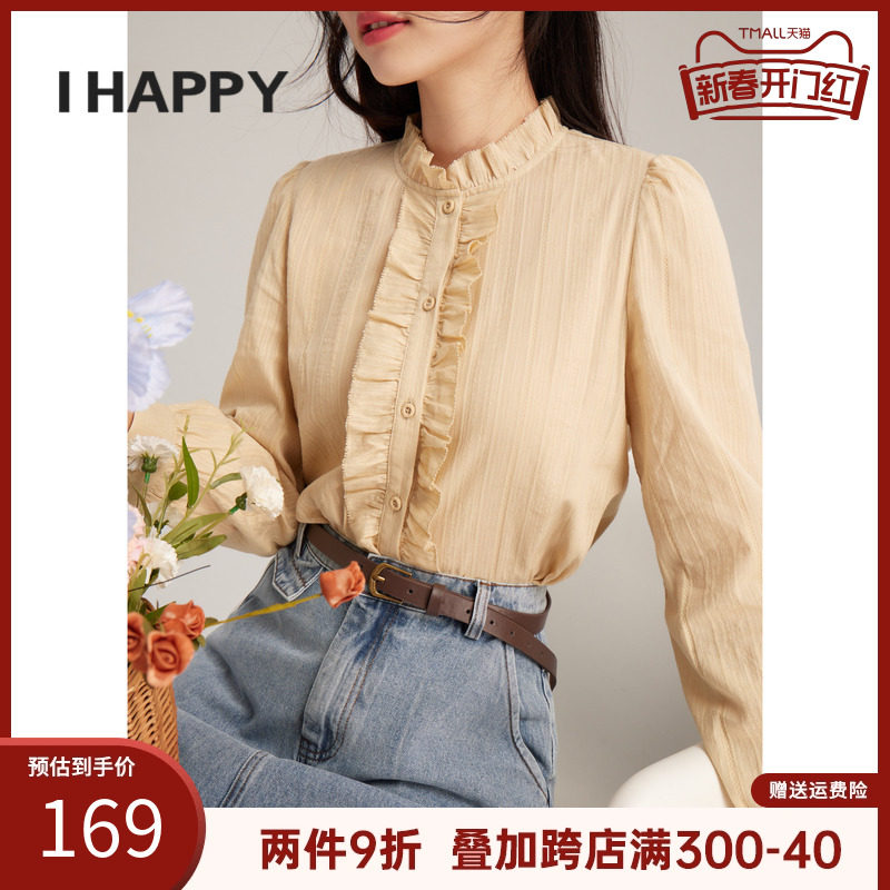 IHAPPY/海贝春装法式复古立领木耳边长袖衬衫设计感内搭衬衣上衣