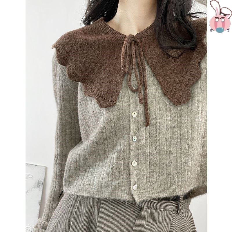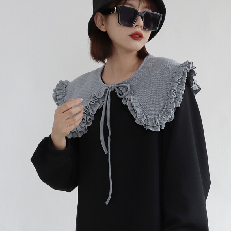 呢子大衣假领子女百搭娃娃领高档搭配毛衣的蝴蝶结冬季木耳边海军